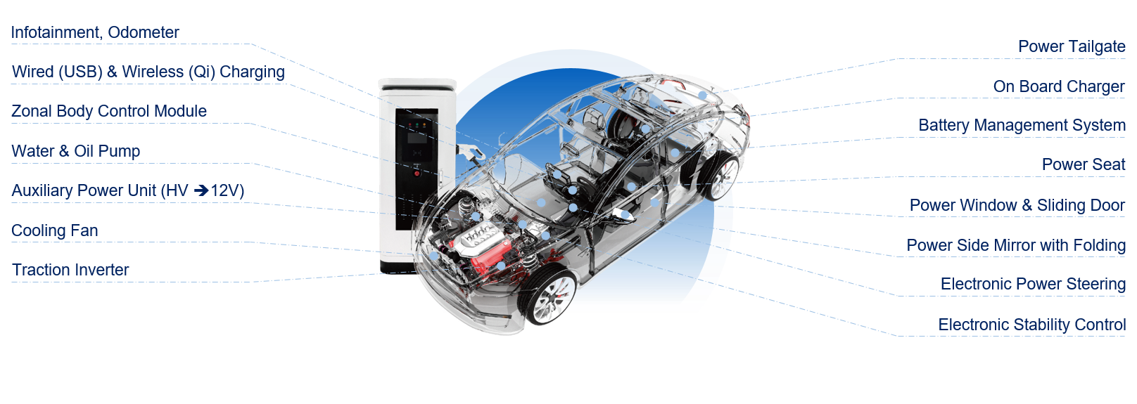 more and more automotive-grade components to E-mobility (battery storage,renewable energy source,electric